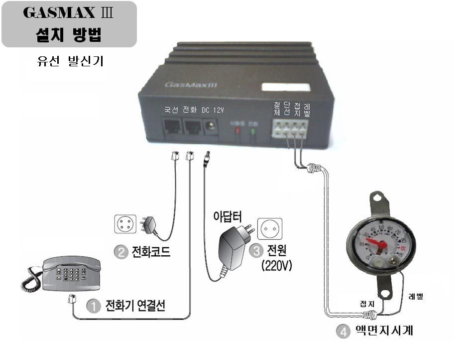 3 . 탱크에 부착된 액면지시계를 조아테크 제품으로 교체 후 액면지시계에 그림과 같이 연결