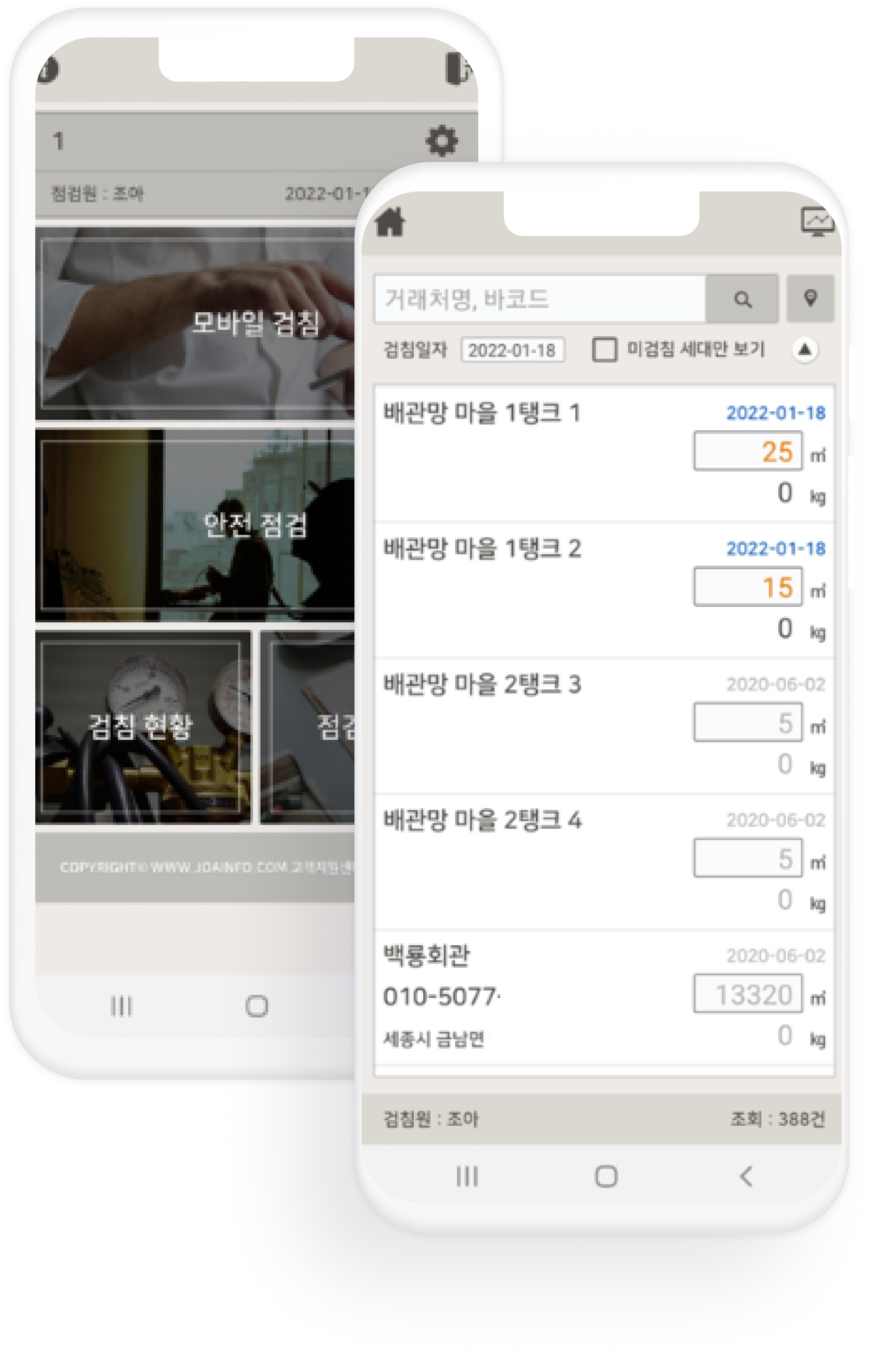 모바일 검침, LP가스안전관리, 소비설비 안전점검표, 저장탱크 안전점검표 사용시설 안전점검표, 검침현황, 점검현황, 가스경영관리 프로그램과 연동하며, 체적검침, 소비설비안전점검표 작성 어플입니다.
