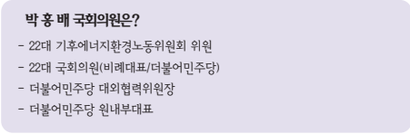 ▲ 벅홍배 국회의원(더불어민주당)Q. 정부의 2035 NDC 목표안이 발표되자 사회 각층의 의견이 엇갈리고 있다. 정부 2035 NDC 목표안에 대한 의견과 향후 목표달성을 위해 나아가야 할 방향에 대한 견해는?