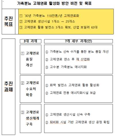 특히 대형 발전소 설비 개선 등을 통한 가축분뇨 연간 100만톤의 에너지 전환 수요를 확보할 계획이다.